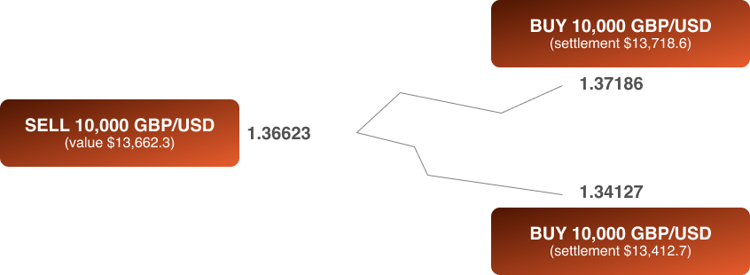 When you go short on GBP/USD, you’re theoretically selling pounds with dollars. When you close the trade, your profit or loss will be calculated in dollars. If the pound strengthened against the dollar, you’d get fewer dollars when you close the transaction. If the pound strengthened, you’d get back more dollars.