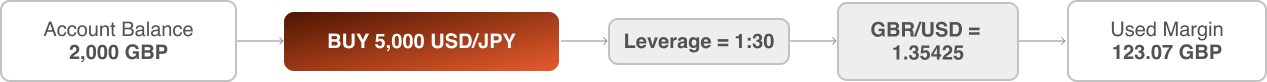One of the benefits of CFD trading is you can apply leverage to your positions. This reduces how much money is required to open a trade. btyematrix offers up to 1:30 leverage for trading USD/JPY, which means you only need to provide 3.33% margin to open a position.